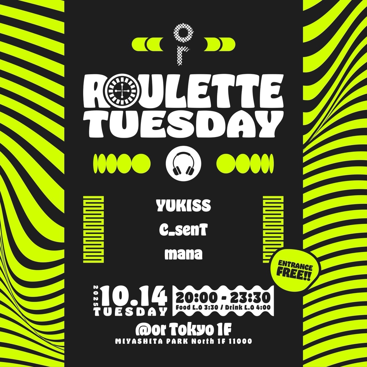 OPEN 20:00-23:30 BAR TIME 23:30-5:00 (FOOD L.O 03:30)