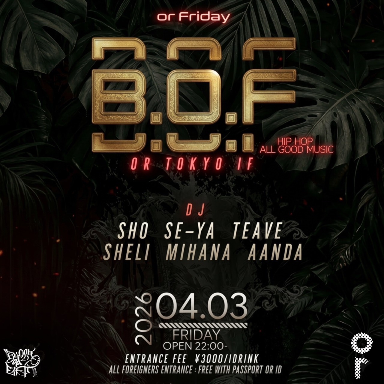 OPEN 22:00 全フロア行き来自由!(1F〜3F) Free access to all floors! (1F–3F)