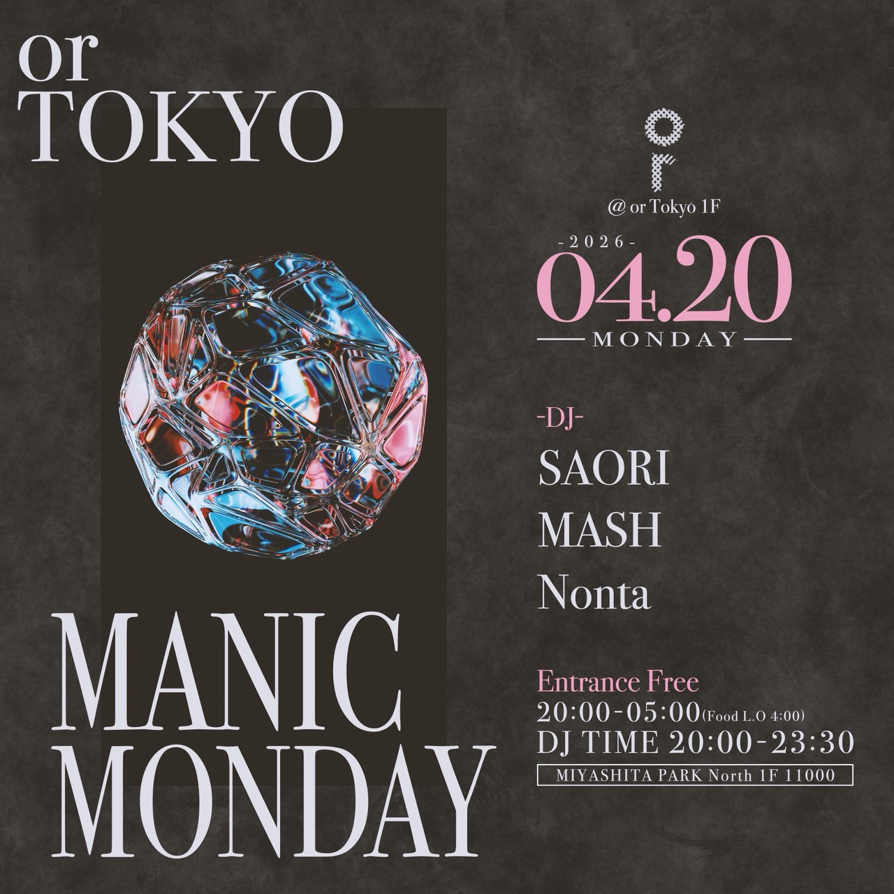OPEN 20:00-05:00 (FOOD L.O 04:00)