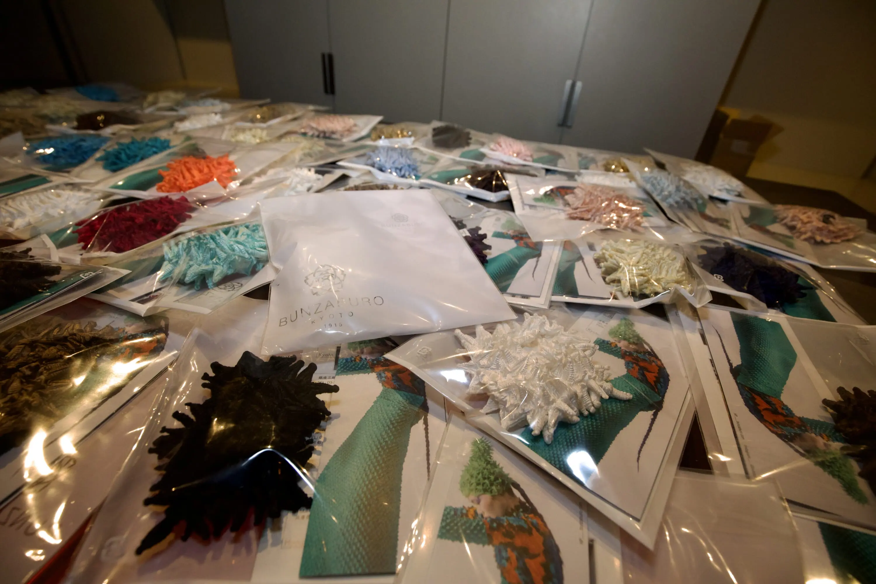 A century-old fashion brand from Kyoto that we introduced in the latest TW issue, Bunzaburo took over the pop-up exhibition space with its fantastic creations. Inspired by the strategic ties used in shibori that are usually undone after dyeing, the brand creates protruding spaces, as if the fashion items were nature’s living creations. Sometimes they look like underwater creatures, other times like mercurial intergalactic lifeforms we are yet to meet. Bunzaburo is best known for its bags and clothes, and its style of textured expanding fabric is now back in vogue.