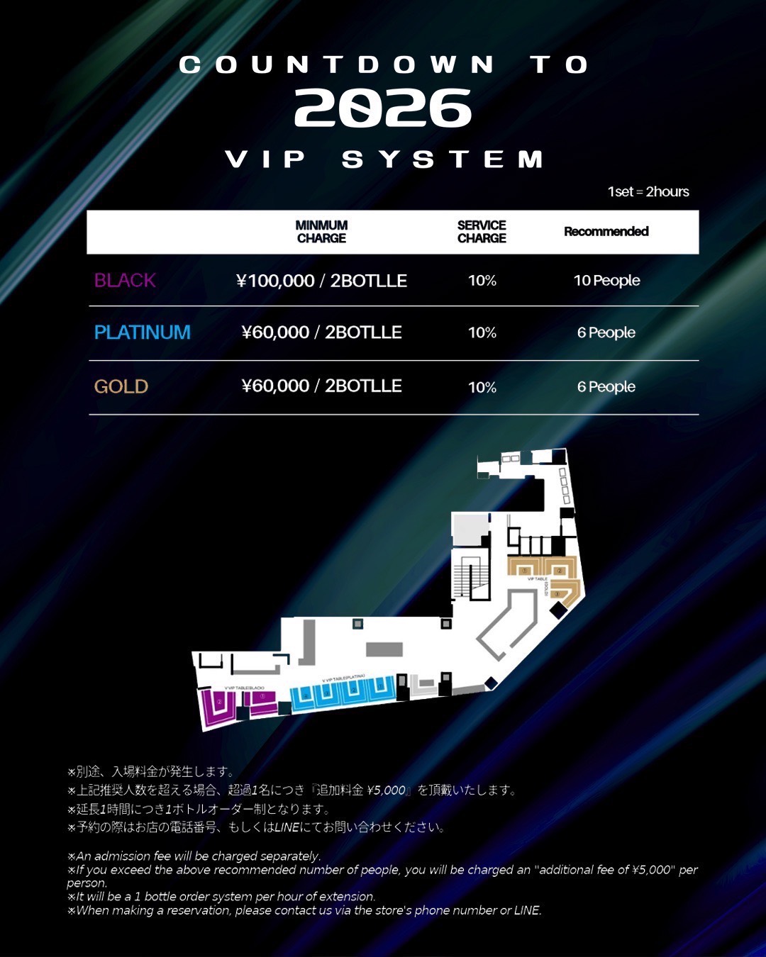 2時間制VIPテーブルで、最高のカウントダウンを。
